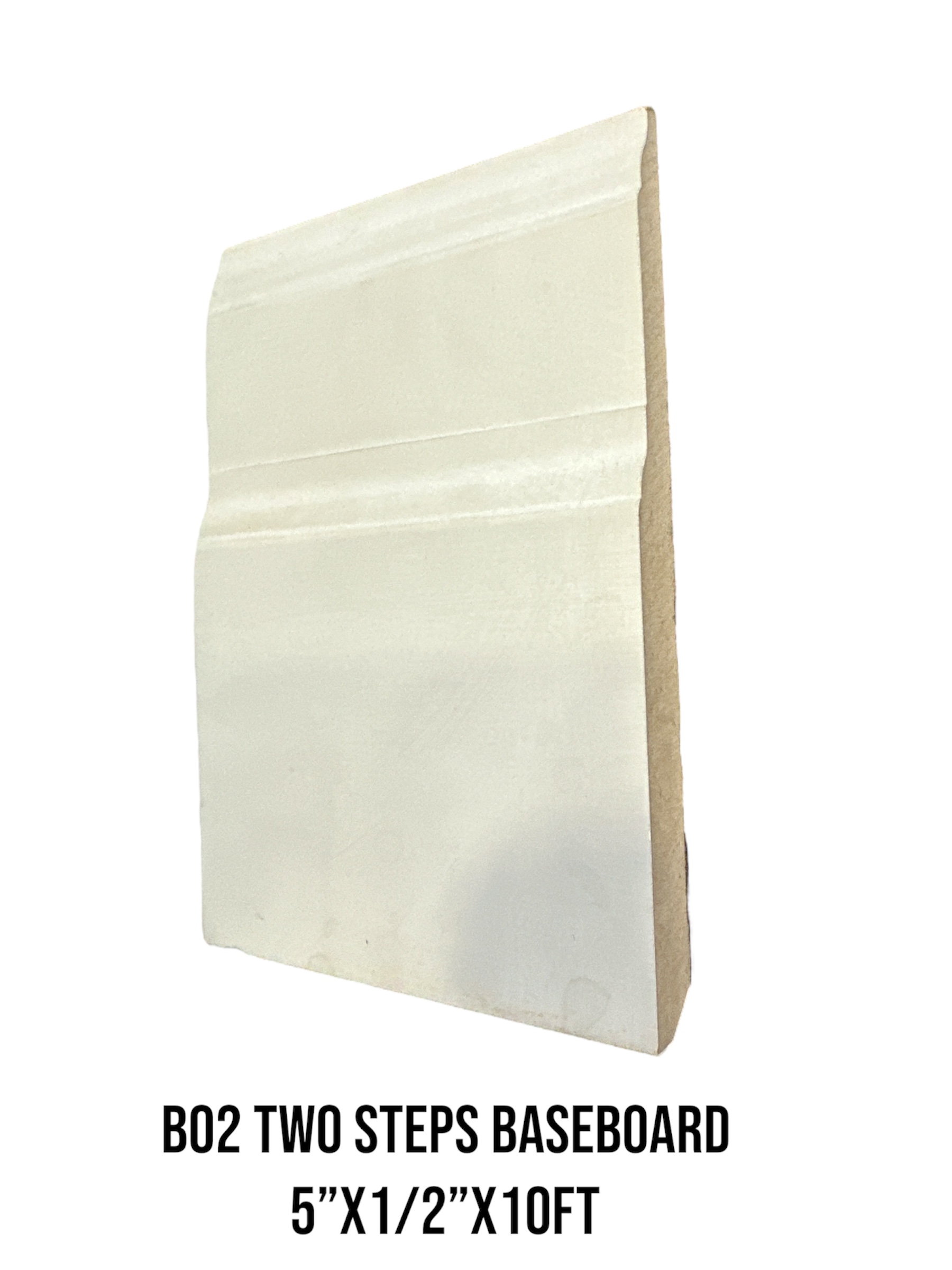 BackB-02 Two steps Baseboard 5″$ 0.01/ eaAdd To Shopping Cart Add to WishlistShareCategoriesMoulding / Baseboard / TrimDetailsDimension mm(inch)1/2”*5 1/4*10'SKU164